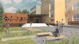 architektonické riešenie sa snaží využiť výhody pozemku, jeho lokalitu, proporcie a osadenie v teréne. silným limitujúcim prvkom pri tvorbe architektonického konceptu je tvarovanie pozemku, jeho reliéf a okolitá jestvujúca zástavba ako miesto napojenia na jestvujúci objekt školy. projekt je tvorený ako monoblok, ktorý sa formou „krčku“ napája na hlavný objekt. novonavrhovaná prístavba je 3-podlažná, výškovo zhodná s jestvujúcim objektom. jej prvá úroveň tvorí podestu, ktorá sa presúva mimo hlavnú os objektu, aby vytvorila priestor pre vznik nového hlavného vstupu. ten sa presúva zo zadnej strany objektu do jej prirodzenej polohy a priamo naväzuje na hlavný vstup do celého areálu. vstup je akcentovaný novým prestrešením. je riešený hlavným schodiskom s rampou a sedačkami.